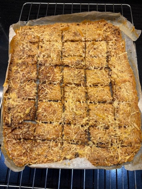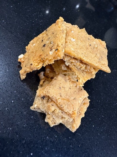 After the furore caused by Chef Juniper Hob’s pâté, here’s the requested recipe for sourdough discard crackers with Parmesan, butter, salt, pepper, spices and magic.